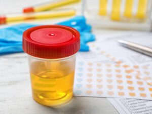 - Po dokładnym umyciu pobierz środkową porcję moczu do jałowego pojemniczka (min. 10 ml)